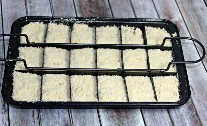 - Spray a 9X13 pan with a non-spray cooking spray ( I used a smaller one to get a thicker bar)
